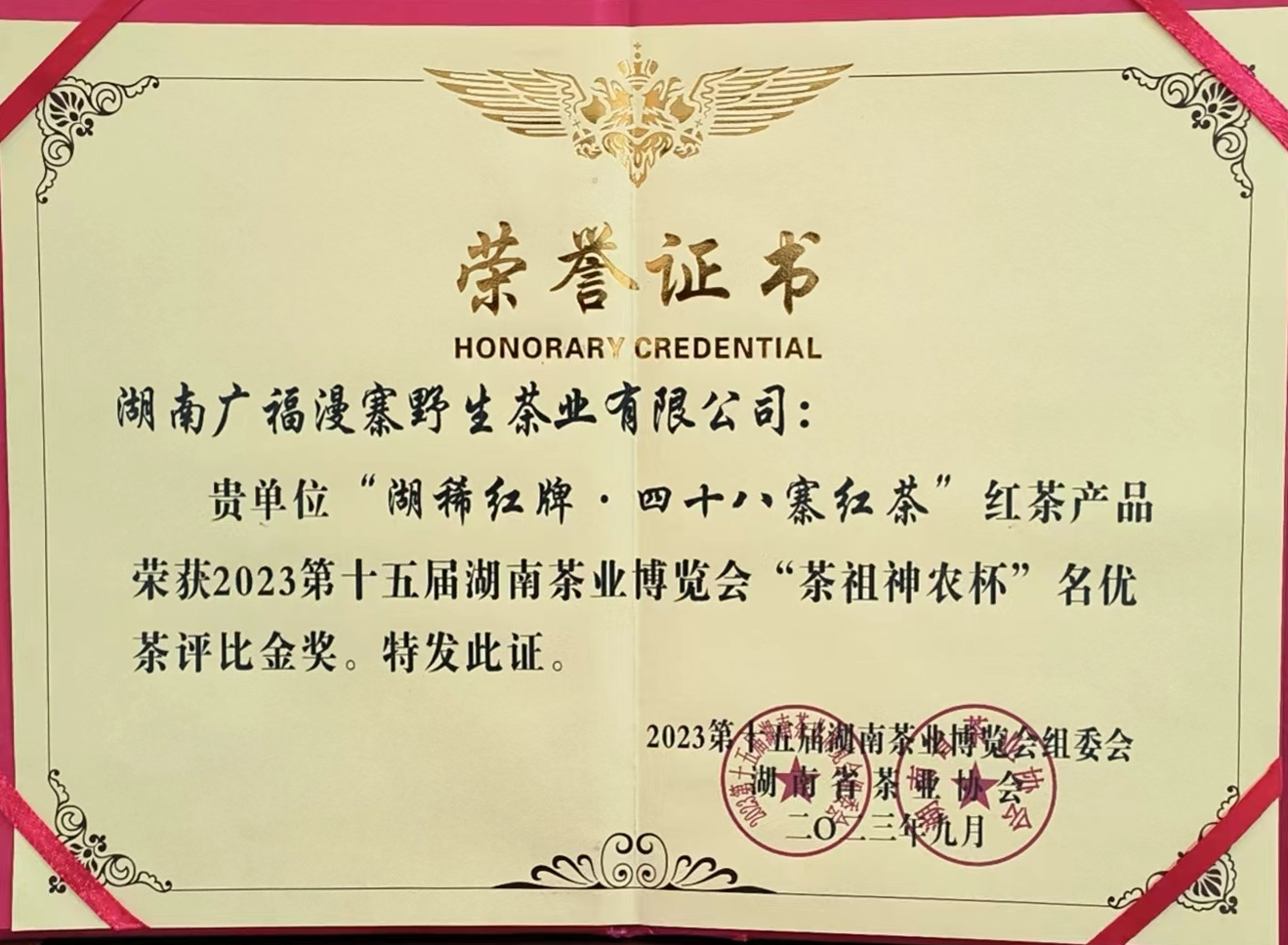 湖稀红牌·四十八寨野生红茶“茶祖神农杯”名优茶评比金奖